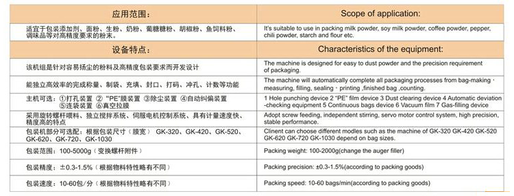 自動(dòng)完成制袋,計(jì)量,下料,封合,分切,計(jì)數(shù)等功能,適用粉末物料的自動(dòng)計(jì)量包裝機(jī)。